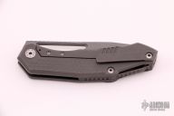 This MK1 Warg by DC Munroe features an stonewashed CPM-3V drop point blade with compound grind, step milled thumbhole and notched thumbrest. The handle has a milled and stonewashed titanium polygonal patterned frame with matching tip up clip and a backspacer with lanyard hole. Has a stainless steel lockface insert. Comes with original pouch, COA, stickers and padded/zippered case. S/N 0047 and dated May 2017. Knife is in excellent condition, shows no signs of use or carry.