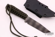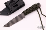 This WP by Strider Knives features a tiger striped S30V blade with false top edge, .190" blade stock and .972" blade depth, full tang construction with green paracord wrapped handle. Comes with kydex sheath. Excellent condition.