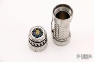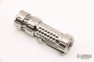 Description Flashlight Specifications: LEDs: 3X Nichia Warm White 219CT LEDs (Made in Japan) mounted on copper PCB Lens: Carclo 10507 LED Optic Glass: Hardened dual AR coated, 99% transmittance Japanese glass Green GID Shim included (Glow in the dark) Waterproof IPX7 rated Battery: Single 18350 (included) Dual QLITE springs, shock proof suspension design Material: Full Titanium alloy including, front cap, radiator body, battery tube and new clip design. Surface finish: Stonewashed 3D CNC machined titanium pocket clip 16 Tritium Vial slots (Tritium Vials NOT included) Size: 1.5mm OD x 6mm Long Weight: 4.0 OZ with battery inside Designed and assembled in USA Turbo Version Driver Specifications: H17Fx Driver w/ lucidrv2 - 7135 + FET Designed by DrJones, this driver is one of the most advanced flashlight driver currently exist Triple-channel output (2 X 7135 channels, 1 X FET chancel) Temperature sensor with full thermal control and protection Full user programmable Off-Time Memory Mode locking Bump proof Battery monitoring Voltage indicator Capable of power three LEDs to 1,300 Lumens Dimensions: W 1.12" x L 3.38" x H 1.06" Package included: 1X Mechforce Mechtorch EDC Flashlight, Titanium, RAW FINISH. 1X Efest 18350 Rechargeable Battery User manual Mechforce sticker Premium packaging box, rechargeable battery and battery charger. New from maker.