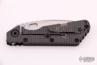 This MSC SMF framelock folder by Mick Strider features a stonewashed blade and a dimple pattern black aluminum and flamed titanium frame and tip up titanium clip. Includes Hinderer "Lock Bar Stabilizer" for maximum reverse lock retention. Nice detent, lockup and blade seating. New condition.