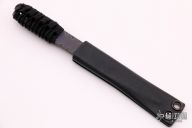 In 1988, he began making specialized knives for use by the military. This turned out to be fortunate turn of events, both for Mick and for the knife using world at large. Mick’s approach was to not get burdened by the weight of past designs. He started with a tabula rasa, a clean slate, informed only by his own experiences and knowledge of what a soldier needed in a knife. The knives he made didn’t look like the hunter-inspired knives seen in most PXs; instead they were almost brutish in their functionality: beefy, solid, and with unbreakable ¼” stock full tangs. These knives were the first indication of his innovative approach: in addition to their utilitarian design, the knives carried a subdued finish and subdued sheaths. No one carrying a Strider knife was going to be spotted because of sunlight glinting off of polished steel or a glossy leather sheath. Soldiers, policemen, and other men going into harm’s way couldn’t buy them fast enough. Mick sampled some good ideas, but made them great. For instance, he was not the first to wrap a knife handle with paracord, but he was the first to do it in a way that was tough enough for sustained infantry use. His knife line grew over the following years to include different varieties of fixed blades, all distinctive and many with specialized uses. But constant in all of them was a disregard for convention, and a desire to try new ideas. An example of this was the Ajax – it featured a very wide blade surface clearly designed to inflict damage. It drew on the weapons carried by Roman legionnaires, yet was modern and usable in the 21stCentury battlefield. Mick also worked on his technical skills, always striving to become better at the physical craft. At the 2002 Blade Show, a group of the best tactical knifemakers in the country decided to compete with each other to produce the most innovative and interesting fixed “battle blade” at the show. Mick’s entry, an incredible integral knife made out of ½” titanium stock with a zippered composite blade, gorgeous handles, and integral guard was the unanimous winner, and effectively retired the competition.