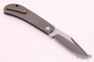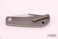 This Rebel Slipjoint by Jim Burke features a Chad Nichols Stainless Damascus blade with nail nick. The handle has a milled and tumbled titanium frame with a Chad Nichols MokuTi tip up clip, stainless steel spring. Has half-stop, flush in all positions. Comes with a velcro case. Excellent condition.