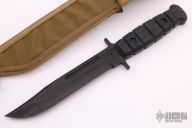 Chuck Mawhinney is a Marine Sniper that has the record for the most confirmed kills by a USMC sniper. This model is the Chuck Mawhinney Fighting Knife. Obviously, there is a heavy K Bar influence in keeping with Mr. Mawhinney's Marine background. The K Bar is one of the most recognizable knives in the world. Unfortunatly, the ones issued to troops are not up to Strider standards. The CMFK fixes that with a full length tang design that is made from super tough CPM 3V steel. The handle scales are stepped black G10 scales that provide excellent grip. Made from super tough CPM 3V steel, and unlike the issued knife, you can actually use and abuse this one without snapping the tip off the first day in the field! Comes with a CSM sheath. Has some light scuffs, otherwise excellent condition.