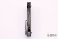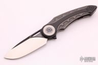 The Custom Knife Factory Bragga offers a unique design from Grabarski "Kombou" Grzegorz. This model is outfitted with a Bohler M390 steel blade and a titanium handle with carbon fiber scales. It offers a tough build and a modern design that will look great in any knife collection. Features: Milled titanium handle with carbon fiber scales provides an ergonomic grip. 2-tone M390 steel blade offers a sharp blade with excellent edge retention. Titanium pocket clip for tip-up carry. Comes with velcro case and COA. #166. Excellent condition.