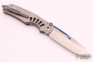 "In Chris’s opinion, Grant and Gavin Hawk are the most innovative design team in the industry. In early 2010, the Hawks showed Chris the concept of a new locking mechanism—one that Chris felt he could engineer and Chris Reeve Knives could manufacture. It has been a lack of capacity not a lack of desire that has precluded Chris Reeve Knives from producing Hawk Designs thus far. It is an honor to present the Ti-Lock. The Ti-Lock mechanism was originally conceived as a means to isolate the lock from the body of the knife, in order to allow more design freedom for handle and frame. Completely ambidextrous, the Ti-Lock allows equal left and right hand use. The Ti-Lock is not an exercise in ultimate lock strength; it is an exercise in mechanical innovation and an illustration of a passion shared by Grant, Gavin and Chris. This passion is also shared by many of our customers—those who buy our knives in appreciation of the design, quality and precision put into our product." The entire frame of the Ti-Lock is composed of tumble finished titanium complimented by a spring titanium tip up carry pocket clip. Excellent Condition.