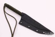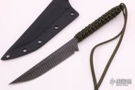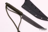 This knife by Mick Strider features a bead blasted and anodized titanium blade with paracord wrap, .151" blade stock and .870" blade depth, full tang construction with cord wrapped handle. Comes with kydex sheath. New condition.