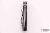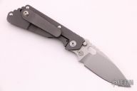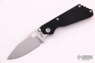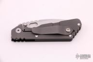 This PT by Strider features a stonewashed blade with a notched thumbrest and a thumbhole. The handle has a black G-10 and bead blasted titanium frame. Excellent condition.