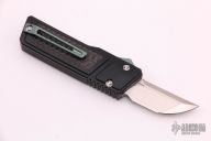 This Akuma OTF Auto by No Limit Knives features a satin finished Tanto blade. The handle has a black aluminum frame with carbon fiber inlays, tip up anodized titanium clip. Comes with a zippered case. New from maker.