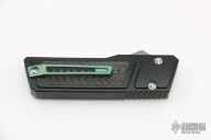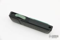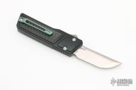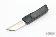 This Akuma OTF Auto by No Limit Knives features a satin finished Tanto blade. The handle has a black aluminum frame with carbon fiber inlays, tip up anodized titanium clip. Comes with a zippered case. New from maker.