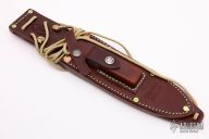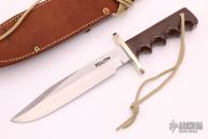 This Model 14 by Randall Made Knives features a satin finished stainless steel blade with sharpened top edge, .207" blade stock and 1.418" blade depth, full tang construction. The handle has a nickel silver guard, brown canvas micarta finger grip handle with lanyard hole. 500 pieces of this limited edition version of the Model 14 were made. Marked "Vietnam Veteran" and numbered 270 of 500 on back of blade. Comes with a zippered case marked Vietnam Veteran and brown leather sheath. Excellent condition.
