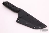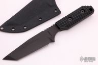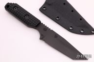This Mick Strider DBL has a black tanto blade with notched thumbrest, .188" blade stock and a blade height of 1.303". The handle is comprised of black G-10 scales with MEFP, lanyard hole in pommel. Includes kydex sheath. New condition.