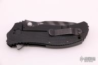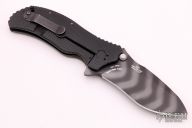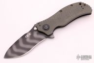This 0301 frame-lock assisted flipper by Zero Tolerance features a recurve spear-point blade with a tiger stripe finish, stainless steel liner green G10 scale, and black titanium scale with a black G-10 back-spacer. It also features the Speed-safe assisted opening system. Tumble finished black stainless steel clip and lock bar stabilizer. Clip is 4-way reversible. S/N 4058. Has some scuffs, otherwise excellent Condition. Comes with ZT zippered case.