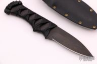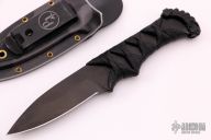 This Blood Shark by Tracker Dan features a black flat ground blade, .181" blade stock and 1.015" blade depth. The handle has a black cord wrap. Comes with a kydex sheath and the knife will fit in either direction. Excellent condition.