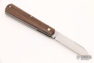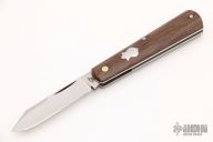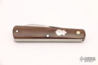 This Caddo Jack by Rick Menefee features a hand rub satin finished blade with nail nick. The handle has Westinghouse Oil Bath canvas micarta covers with stainless steel escutcheon, liners and an A2 spring, has half-stop, flush in all positions. New from maker.