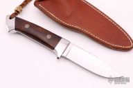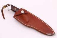 "I started making knives in 1985. I use the stock removal method. I also discovered the wonderful world of forged knives, I also started making full integrals using a milling machine. I usually have all three types at the shows I attend and I use most common steels. I do my own heat treating and like to use handle materials like stag, ivory, wood, micarta, sheep horn, and others. I make my own sheaths individually for each knife."