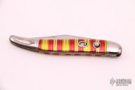 This vintage auto by Imperial has a satin finished blade, steel bolsters, Celluloid scales, steel liners, and backspacer. Good function. Has some light patina, otherwise excellent condition.