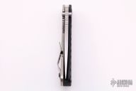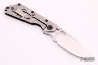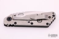 This SMF by Strider Knives features a stonewashed blade and a handle with grooved aluminum on one side and stonewashed titanium on the other. Titanium clip. Notches on thumb-rest, rear of handle, and lockup. Includes Hinderer "Lock Bar Stabilizer" for maximum reverse lock retention. Excellent Condition.