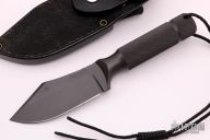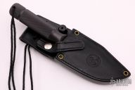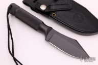 This Ubejane Skinner from Chris Reeve features a non reflective black finish with a clip point A2 blade with a false top edge and notched thumbrest, .203" blade stock and 1.715" blade depth, integral construction. The handle is knurled for a solid grip and has a removable butt cap with lanyard, has butt cap and storage area inside the handle. Comes with a black leather sheath, original box and COA dated May 23, 2005. Excellent condition.