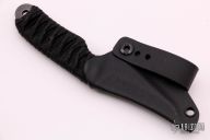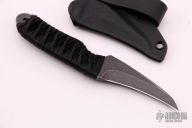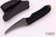 This knife by Joe Watson features a hawk bill dark stonewashed blade with .147" blade stock and 1.156" blade depth, full tang construction. The handle has black cord wrap. Comes with a kydex sheath. Excellent condition.