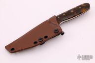 The overall mission is to offer a variety of high performance, handmade knives from kitchen to outdoors to self defense pieces. I do things the right way, one piece at a time. I am meticulous in my material selection, heat treating and effort in the details to offer people the best knives I can. As someone who enjoys the craft of knifemaking and has a lot of interests, I make knives for a wide variety of uses. Generally these are broken down into two simple categories: -Field Grade: Everyday working knives made to perform with good geometry, heat treat and materials suited more towards ease of maintenance and durability. CPM154 is the most common steel used as it is the best all-around steel for most situations. Sometimes, steels like CPM3V or PSF27 will be offered as well. A stonewash finish is the most common finish I offer on Field Grade pieces. -Signature Grade: My opportunity to explore and deliver a higher level of old world craftsmanship. The performance, high quality heat treat as the working knives, but with more premium features, more striking cosmetics and the use of more rare materials. Finishes can vary, from painstakingly hand rubbed and polished metal, high gloss satin finishes and pattern acid etched finishes. Blades may be stainless, or carbon steel with visible hardening lines-commonly referred to as a hamon. Thicker stock will often come with a tapered tang. You will also see hand sanded handles made from exotic woods, vintage phenolic materials, and other specifically selected accouterments.