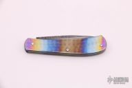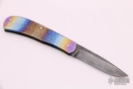 This vintage slipjoint by Rick Hinderer features a San Mai Damascus blade with nail nick. The handle has jeweled and anodized titanium covers with a gun blued steel spring. Excellent condition.