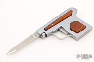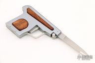 This special automatic knife is a remake of the old Maniago gun-letter opener made on 50's. The handle is made of aircraft anodized aluminum with cocobolo inlays, and the blade of 440C steel. This knife is not for EDC use, but for collectors who like a piece of Italian knife history or like a letter opener. Excellent Condition. Comes with original box and papers. Dated 2018 and s/n 139