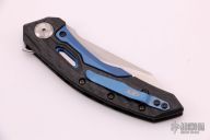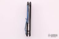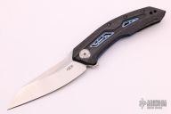 The ZT 0762 is a unique knife with supreme features. The wharncliffe blade has a two-tone satin and stonewash finish. Being made of CPM-20CV, the blade is heat treated and has exceptional hardness. The carbon fiber handle has blue anodized hardware accents with handle windows in the frame. Titanium sub-frame lock with a hardened steel lock bar insert. The ZT Tuned Detent System (TDS) is fine tuned so the detent is not too heavy or too light, providing consistent open and closing action.