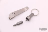 Strider SMF Accessory Pack. Custom titanium SMF deep carry clip, .45 Auto lockbar stabilizer with screws, and an SMF pivot tool.