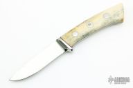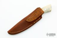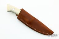 This integral Hunter by Ted Dowell features a drop point mirror polished blade, .172" blade stock, .965" blade depth, integral construction with bone scales and red liners. Great feel in the hand. Comes with a brown leather sheath. Excellent condition.