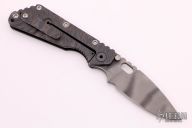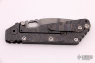 This SMF framelock folder by Strider features a tiger stripe blade and a black G-10 and flamed titanium frame and tip up titanium clip. Nice detent, lockup and blade seating. Has some scuffs, otherwise excellent condition.