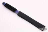 In 1988, he began making specialized knives for use by the military. This turned out to be fortunate turn of events, both for Mick and for the knife using world at large. Mick’s approach was to not get burdened by the weight of past designs. He started with a tabula rasa, a clean slate, informed only by his own experiences and knowledge of what a soldier needed in a knife. The knives he made didn’t look like the hunter-inspired knives seen in most PXs; instead they were almost brutish in their functionality: beefy, solid, and with unbreakable ¼” stock full tangs. These knives were the first indication of his innovative approach: in addition to their utilitarian design, the knives carried a subdued finish and subdued sheaths. No one carrying a Strider knife was going to be spotted because of sunlight glinting off of polished steel or a glossy leather sheath. Soldiers, policemen, and other men going into harm’s way couldn’t buy them fast enough. Mick sampled some good ideas, but made them great. For instance, he was not the first to wrap a knife handle with paracord, but he was the first to do it in a way that was tough enough for sustained infantry use. His knife line grew over the following years to include different varieties of fixed blades, all distinctive and many with specialized uses. But constant in all of them was a disregard for convention, and a desire to try new ideas. An example of this was the Ajax – it featured a very wide blade surface clearly designed to inflict damage. It drew on the weapons carried by Roman legionnaires, yet was modern and usable in the 21stCentury battlefield. Mick also worked on his technical skills, always striving to become better at the physical craft. At the 2002 Blade Show, a group of the best tactical knifemakers in the country decided to compete with each other to produce the most innovative and interesting fixed “battle blade” at the show. Mick’s entry, an incredible integral knife made out of ½” titanium stock with a zippered composite blade, gorgeous handles, and integral guard was the unanimous winner, and effectively retired the competition.