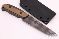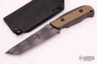 This RM2by Duane Dwyer features a MilSpec Black Oxide coated blade with razorwire pattern, .201" blade stock and 1.380" blade depth, full tang construction with black/tan G-10 scales. Comes with a kydex sheath and COA. Has some sheath scratches, otherwise excellent condition.