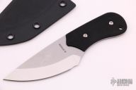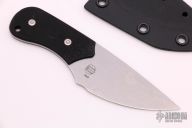 This Zipper by Mick Strider features a chisel ground stonewashed blade with .060" blade stock and 1.373" blade depth, full tang construction with black G-10 scales. Comes with a kydex sheath. Excellent condition.