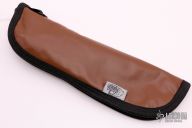 This knife by Harvey King features a mirror finished blade with .095" blade stock and .794" blade depth, full tapered tang construction. The handle has a nickel silver guard, stag scales with mosaic pins and red liners. Comes with a hand tooled brown leather sheath and zippered case. "10 130" on blade. Has a few light scratches, otherwise excellent condition.