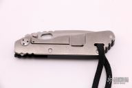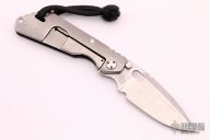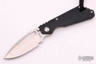 This PT CC by  Strider Knives features a tumble finished drop point blade with thumb hole, dual thumb studs and notched thumb rest. The handle is comprised of a contoured black G10 show side and backspacer with a contoured and tumbled titanium lock side. Lanyard hole in pommel. Excellent condition.