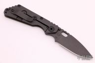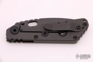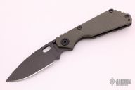 This Strider SNG framelock folder features a black cerakote blade with thumbhole and notched thumbrest. The handle has a green G-10 and black cerakote titanium frame with titanium clip, tip up carry. Jimping on blade spine. Nice lockup, and blade seating. Excellent condition.
