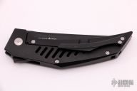 This Heat Seeker is a Tashi Bharucha design made by Massdrop features a black tumbled blade with flipper. The handle has a black tumbled titanium frame with matching tip up clip. Comes with original zippered case. Has a scuff on the clip, otherwise excellent condition.