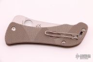 This "Hundred Pacer" by Spyderco features a satin finished blade with thumbhole. The handle has brown/tan G-10 scales with an inlaid stainless steel liner, tip up reversible stainless steel clip. Comes with original box and papers. Excellent condition.