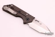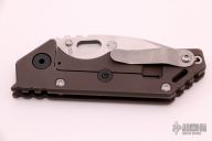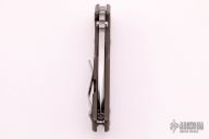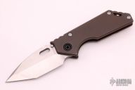 This 3/4 AR by Strider Knives features a stonewashed blade with notched thumbrest and thumbhole. The handle has a tumbled and anodized titanium frame with a stonewashed titanium tip up clip. Nice detent, lockup and blade seating.  Excellent condition.