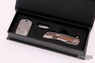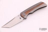 This Spar-K by WingMan EDC features a satin finished tanto blade with notched thumbrest and "Kickstop" flipper. The handle has a tumbled titanium frame with copper inlays, lanyard pin, tip up clip with hidden screws. Comes with original box and papers. Excellent condition. #264 Comes with original box and papers.