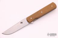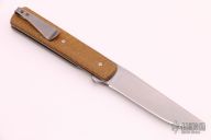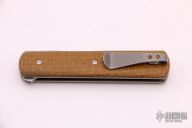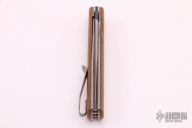This Urban Barlow Flipper by Brad Zinker features a tumbled blade with notched thumbrest and flipper. The handle has thunderstorm Kevlar micarta scales, tumbled titanium liners and a tip up titanium clip. Rides on bearings, nice detent, lockup and blade seating. Comes with zippered case. This was the prototype for a Boker collaboration. Excellent condition.
