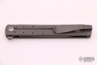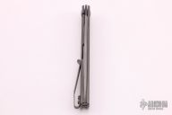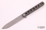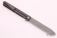 This Melon Sampler by Brad Zinker features a tumble finished blade with notched thumbrest and flipper, .102" stock. The handle has a tumble finished titanium frame with a matching tip up clip, .096" thick titanium slabs. Nice detent, lockup and blade seating. Comes with a leather zippered case. Excellent condition.