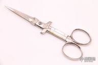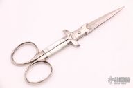 German Prostitute Scissors. Can be used as a dagger. Has mother of pearl inlays. Stamped "Sur-Ban Solingen" and "ERN German". Has some light scratches, otherwise excellent condition.