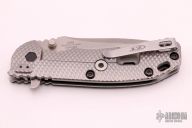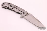This ZT 0560 Hinderer design has a stonewashed drop point blade with dual thumb studs and notched thumb rest. Handle is black G-10 A-side with titanium B-side. Has 4-way reversible stainless steel clip and lanyard hole.  S/N 5886. Includes the original box and papers.  Excellent Condition.