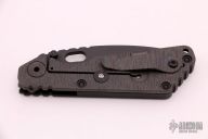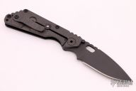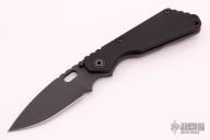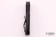 This SNG by Strider Knives features a black blade and textured black G-10 and flamed titanium frame and tip up clip. Notches on thumbrest, rear of handle, and lockup. Blade is centered when closed and locks up with no play. Has a few scuffs, otherwise excellent condition.
