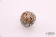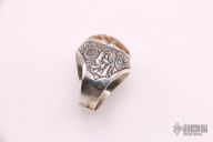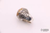 This Ring by Joe Scherhaufer is made of Sterling Silver and has a red mammoth tooth inlay. Has engraved wooly mammoth on both sides. Size 15.5. New from maker.