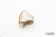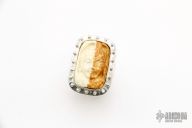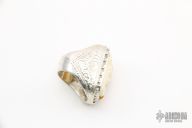 This Ring by Joe Scherhaufer is made of Sterling Silver and has been Rhodium plated, has a carved bone inlay. Has engraving on both sides. Size 11. New from maker.