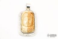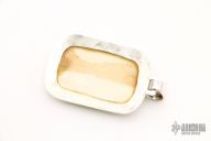 This Pendant by Joe Scherhaufer is made of Sterling Silver and has a carved bone inlay. Has engraving around edges. New from maker. 3" x 1.75"