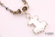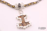 This is a Thors Hammer Sterling Silver pendant with mammoth tooth inlay, has a stainless steel and brass 22" chain. New from maker.