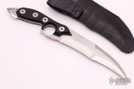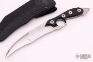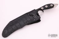 This knife by ITAC features a hand rub satin finished multi-ground blade with sharpened top edge, .192" blade stock and 1.506" blade depth, full tang construction with black paper micarta scales. Comes with a leather covered kydex sheath and zippered case. Has some light scratches, otherwise excellent condition.